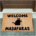 Ce paillasson d'entrée drôle accueillera vos invités avec humour grâce à son chat taquin armé d'un couteau. Le tapis d'entrée pratique gardera votre intérieur propre tout en divertissant vos visiteurs. Ajoutez une touche d'amusement à votre entrée avec ce paillasson unique !