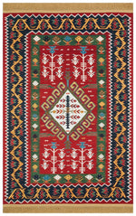 Tapis fait à la main qui capture les figures traditionnelles du tissage de tapis méditerranéen dans un style d'impression moderne.